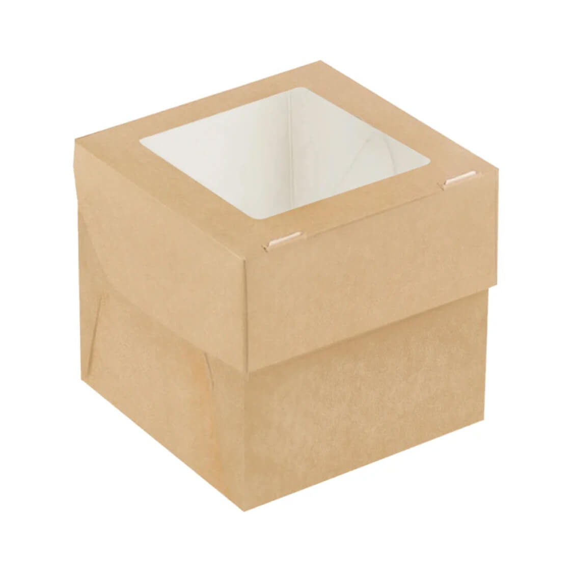 Контейнеры для маффинов и тортов поставляются в плоском виде и занимают немного места. Сборка происходит за несколько секунд белой или крафтовой стороной вверх.