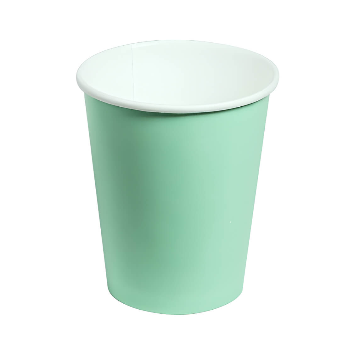 Мятные одноразовые бумажные стаканчики для горячих напитков, изготовлены из однослойного картона, внешняя цветная печать. Объем стаканчиков — 250/290 миллилитров.