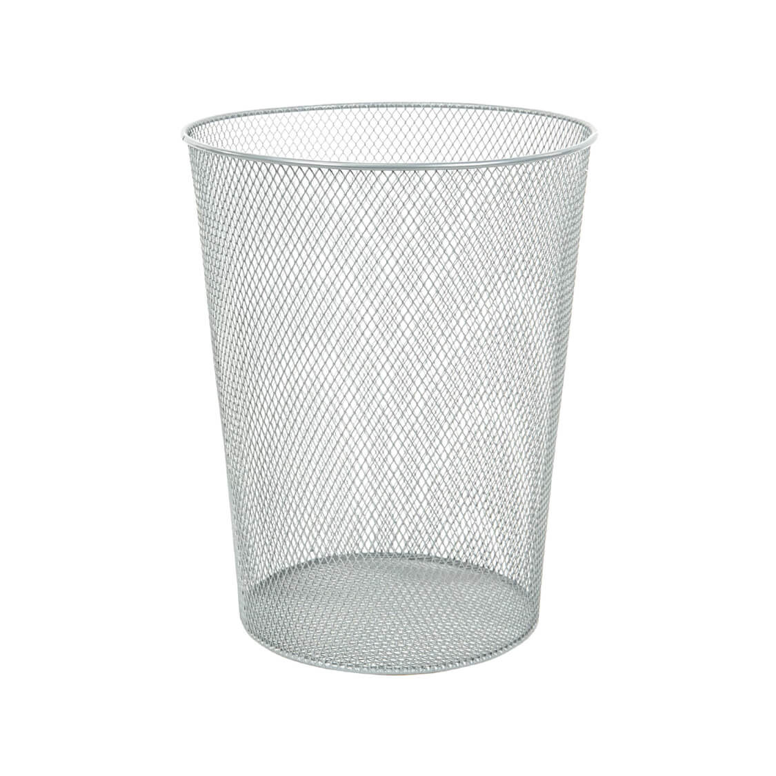 Изготовлена из металлической сетки серебристого цвета. Корпус расширяется к верху: диаметр основания составляет 17 см, а диаметр верхней части – 22,5 см. Высота – 28 см, объем – 9 л. Легкость и компактность корзины позволяют перемещать ее с одного места на другое. Корзина удобно помещается под рабочим столом. Рекомендуемый размер мешка для мусора – 32х55 см, объем – до 12 литров.