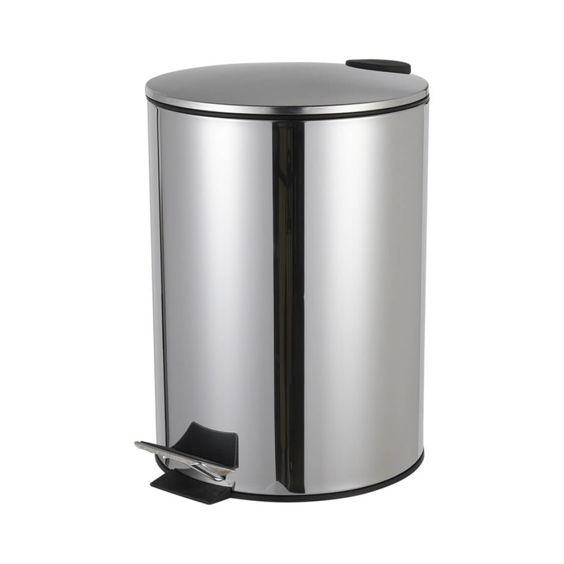 Ведро с педалью. Произведено из нержавеющей стали. Поверхность глянцевая. Съемный пластиковый вкладыш с ручкой.