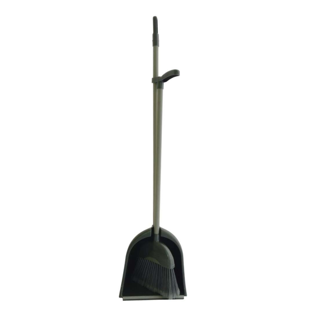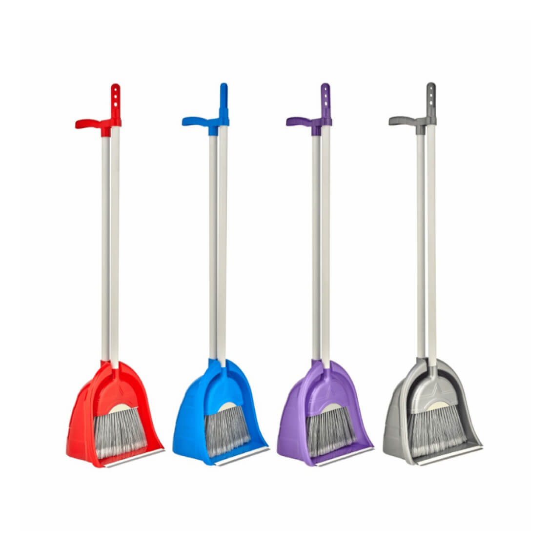 Набор для уборки щетка+совок — удобная щетка с длинной щетиной, резиновая кромка на совке и держатель, соединяющий совок и щетку.